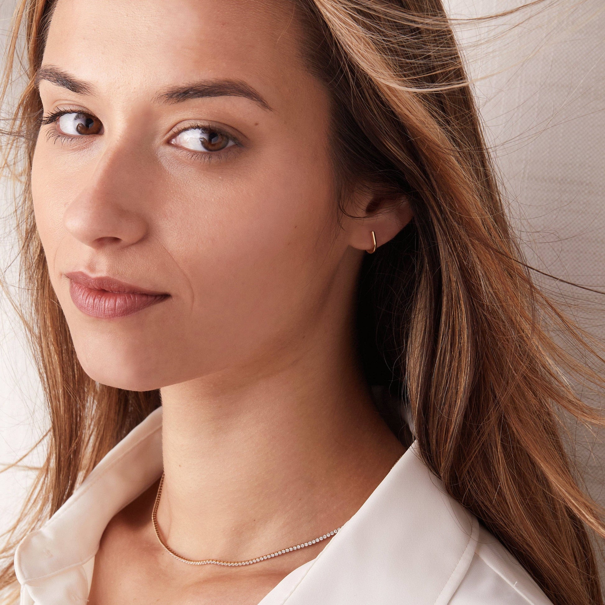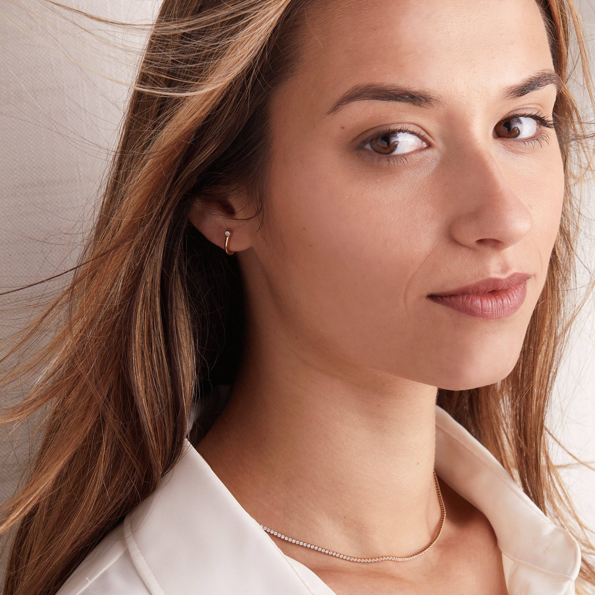 Elegante y discreto, el aro pequeño con topacio blanco presenta un delicado diseño con un único topacio blanco que aporta un sutil brillo en un lado, mientras que el reverso ofrece un acabado pulido y sofisticado. ¡Sí, es reversible! Puedes lucir cualquiera de los dos lados para un look diferente, tanto de día como de noche. Su forma fina y ligera lo hace perfecto para llevarlo a diario sin esfuerzo, ya sea solo o combinado con otros pendientes.
