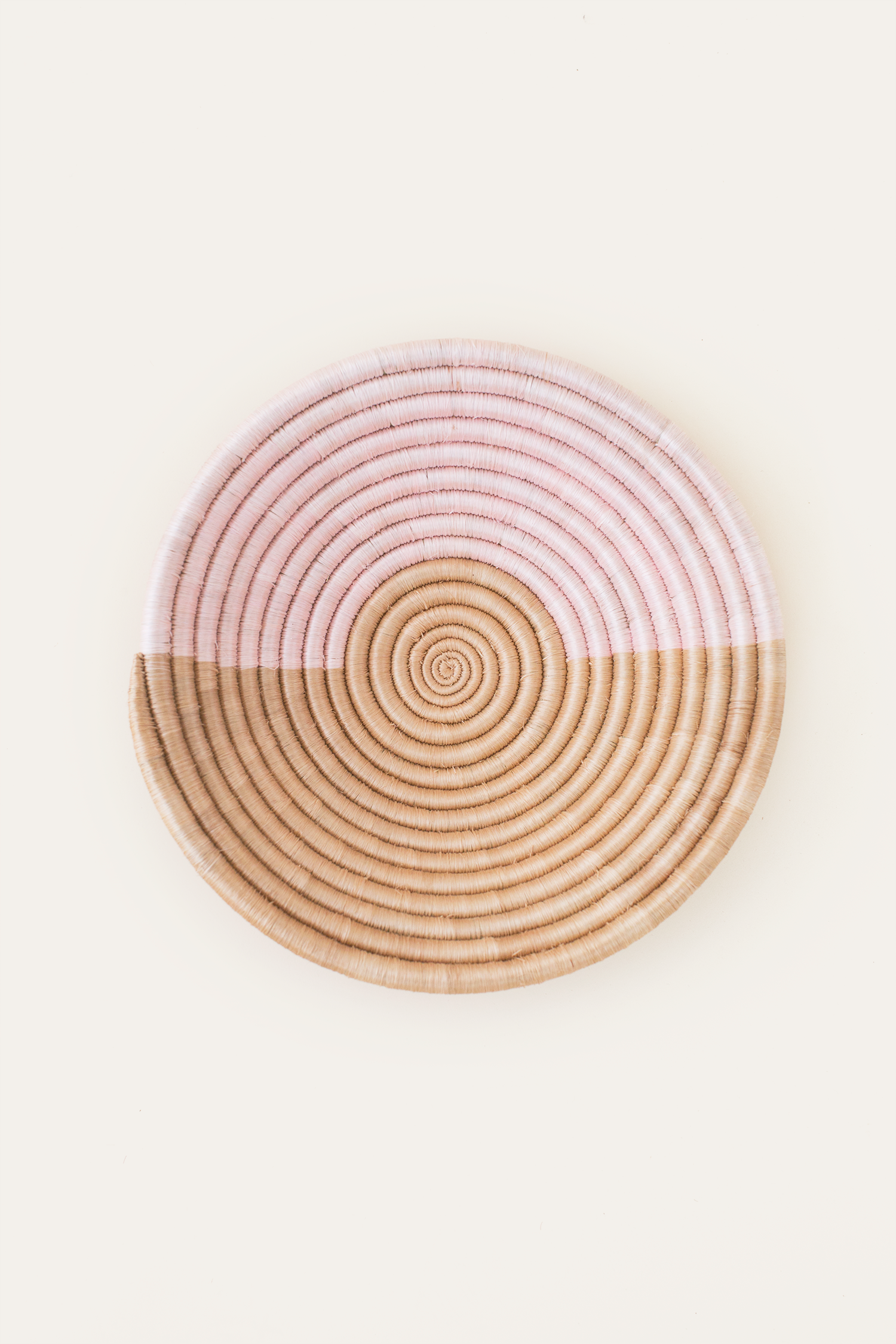 One of Indego Africa's best-selling signature plateaus baskets, handcrafted in Rwanda with a time-honored weaving technique passed down from generations of artisans. This product is handmade with heart by Burundian and Congolese refugees at the Mahama and Kigeme Refugee Camps in Rwanda. The best-selling sweetgrass plateaus make an ideal housewarming gift and are the perfect shape and size to be used as a fruit basket, hung in a cluster on a gallery wall, or simply placed as an accent piece in your favorite nook around the house.