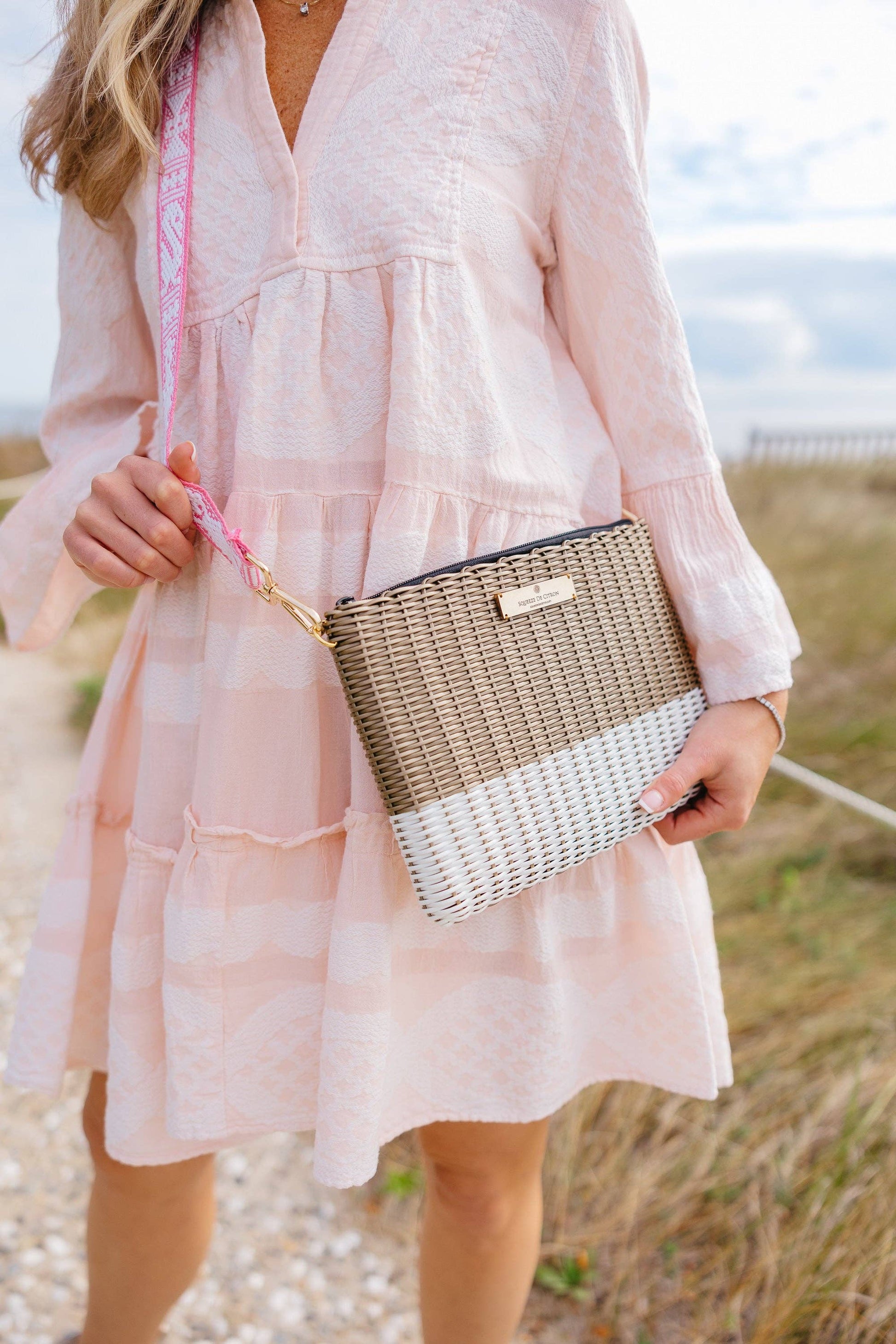 Handcrafted in Guatemala by talented artisans, Squeeze De Citron's Large Lemon Drop Clutch is made from 100% recycled plastic. More than just a clutch — it's a wallet, pouch, or handbag in one. Designed for versatility and style, they transition effortlessly from beach days to elegant nights, blending craftsmanship, sustainability, and elegance in every detail. The clutch includes exterior golden loops so that you can attach a strap to and wear over the shoulder (golden strap not included). Every bag includes a unique, colorful pom (color and styles vary).