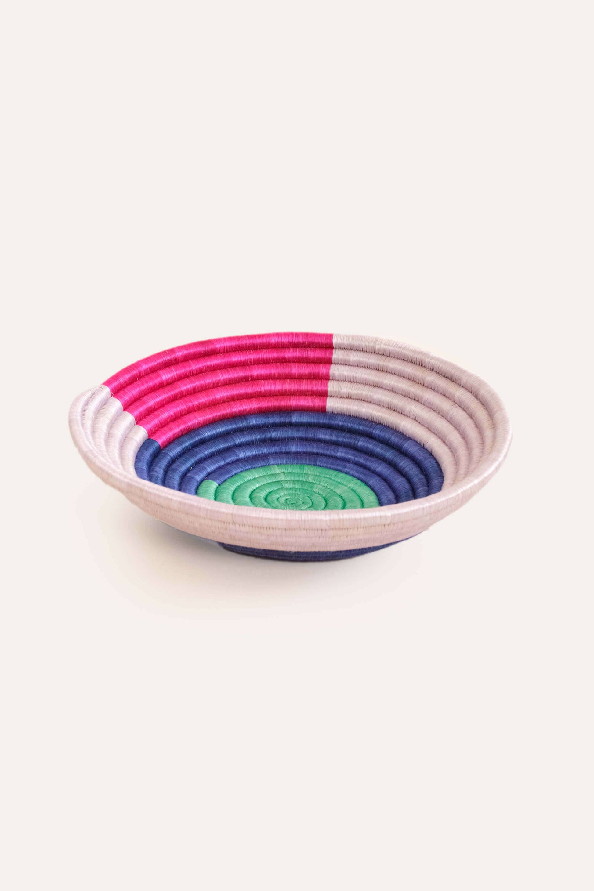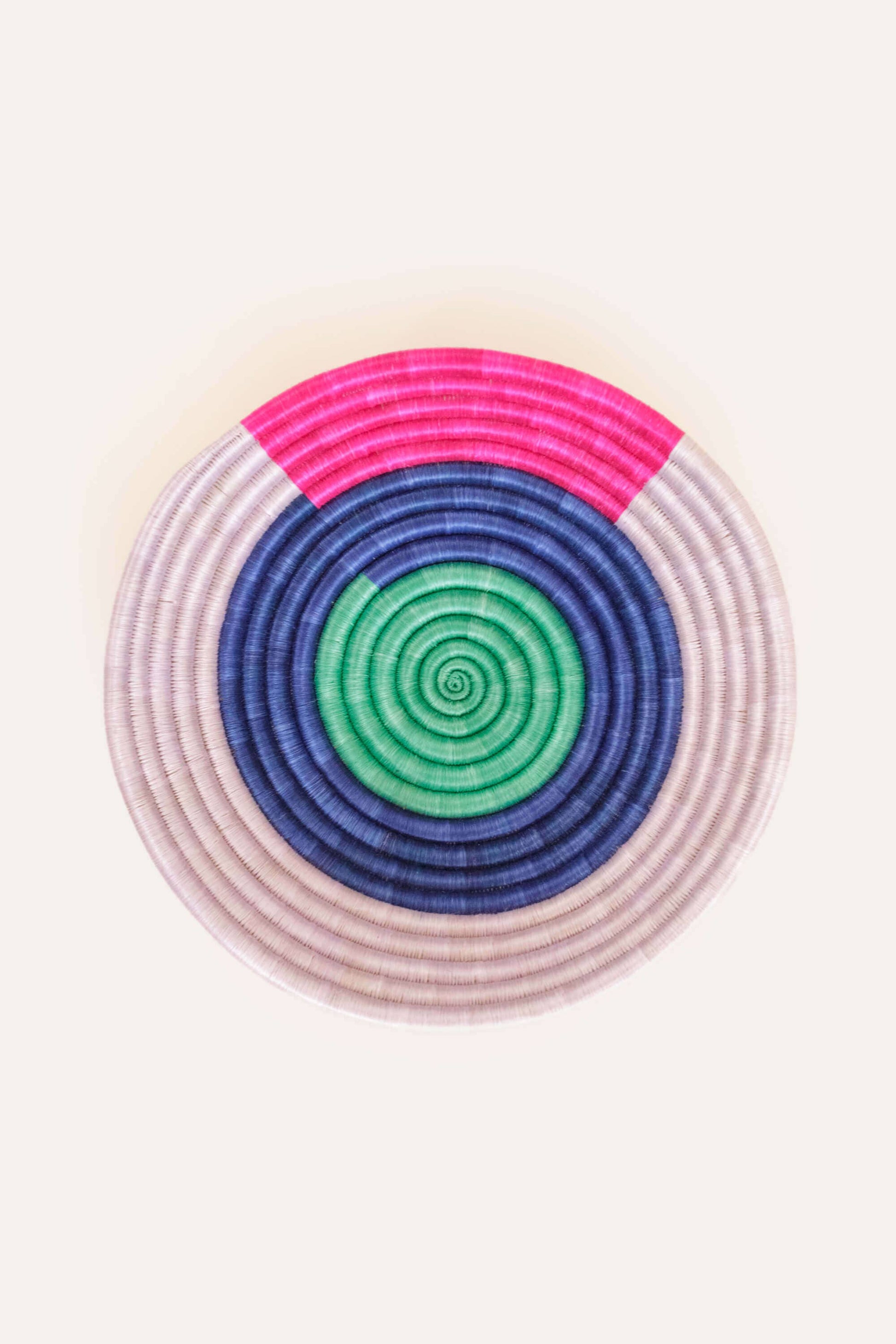 One of Indego Africa's best-selling signature plateaus baskets made in Rwanda with a one-of-a-kind handwoven design. The best-selling sweetgrass plateaus make an ideal housewarming gift and are the perfect shape and size to be used as a fruit basket, hung in a cluster on a gallery wall, or simply placed as an accent piece in your favorite nook around the house.